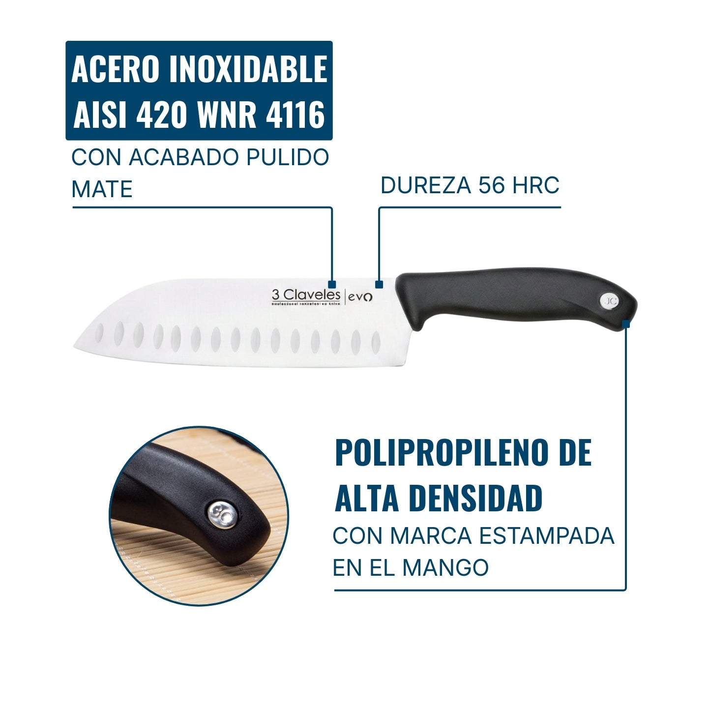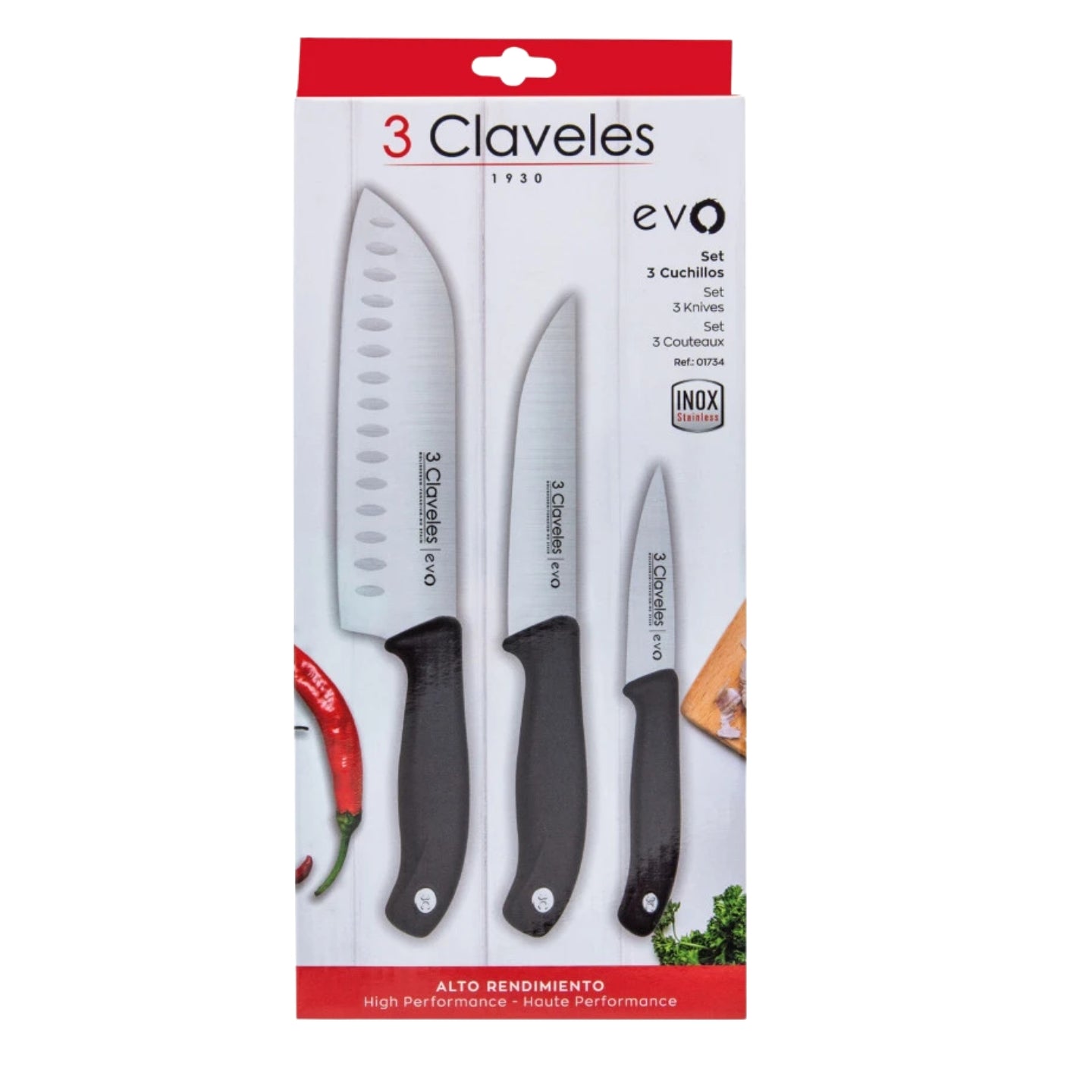 Cuchillo 3 Claveles Santoku Cocina Verduras Set De Tres