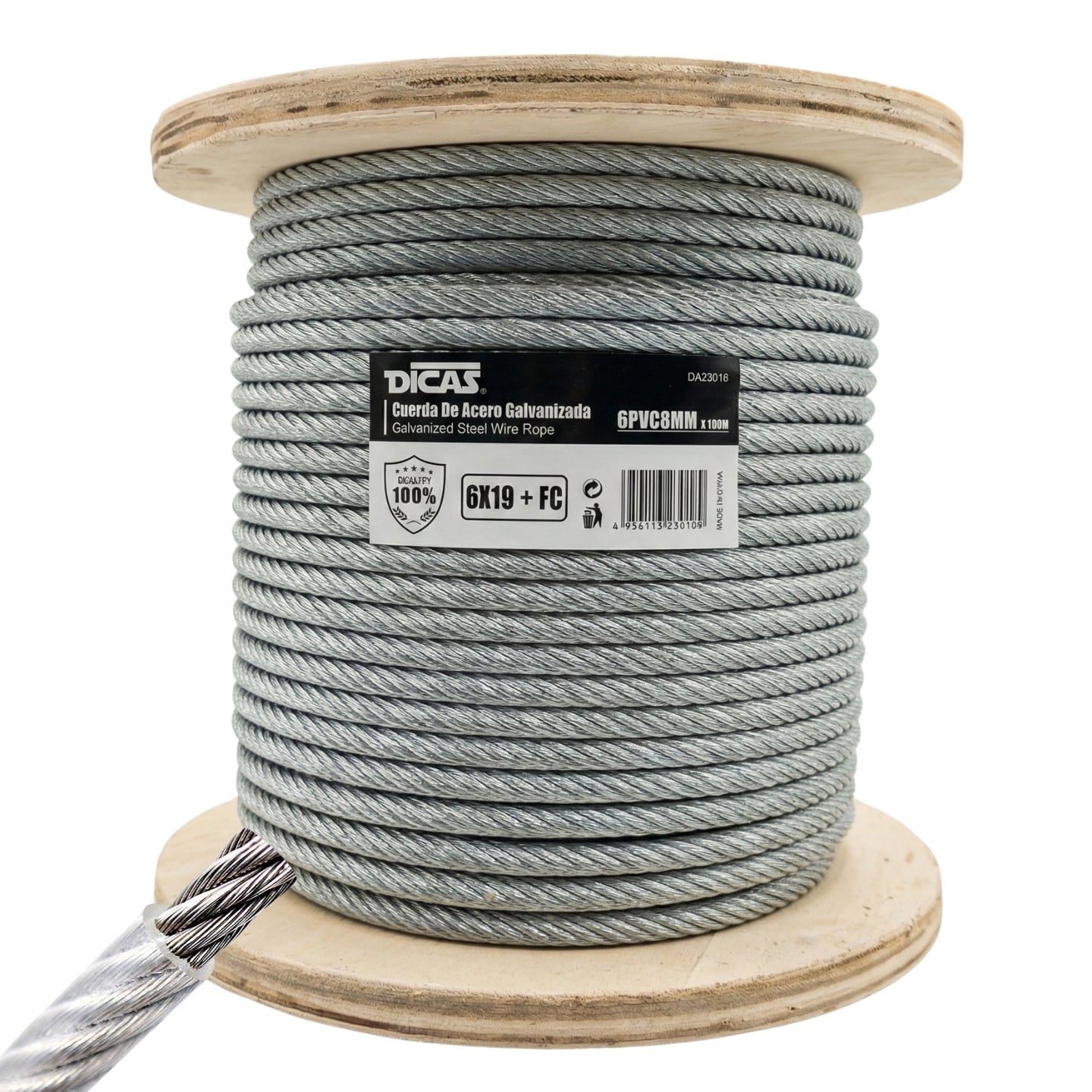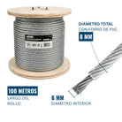 PIOLA CABLE DE ACERO FORRADO PVC 6 MM 100 METROS DICAS