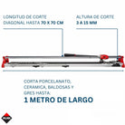• LARGO MAXIMO DE CORTE DIAGONAL: 70 CM