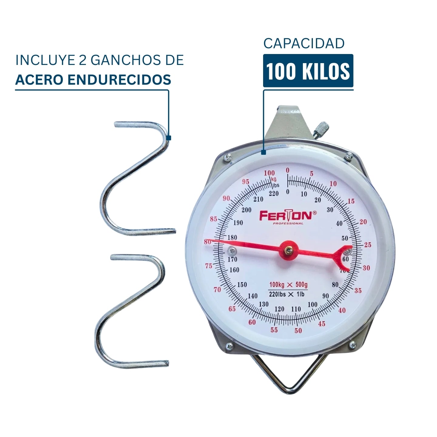 BALANZA COLGANTE TIPO RELOJ 100 KG FERTON