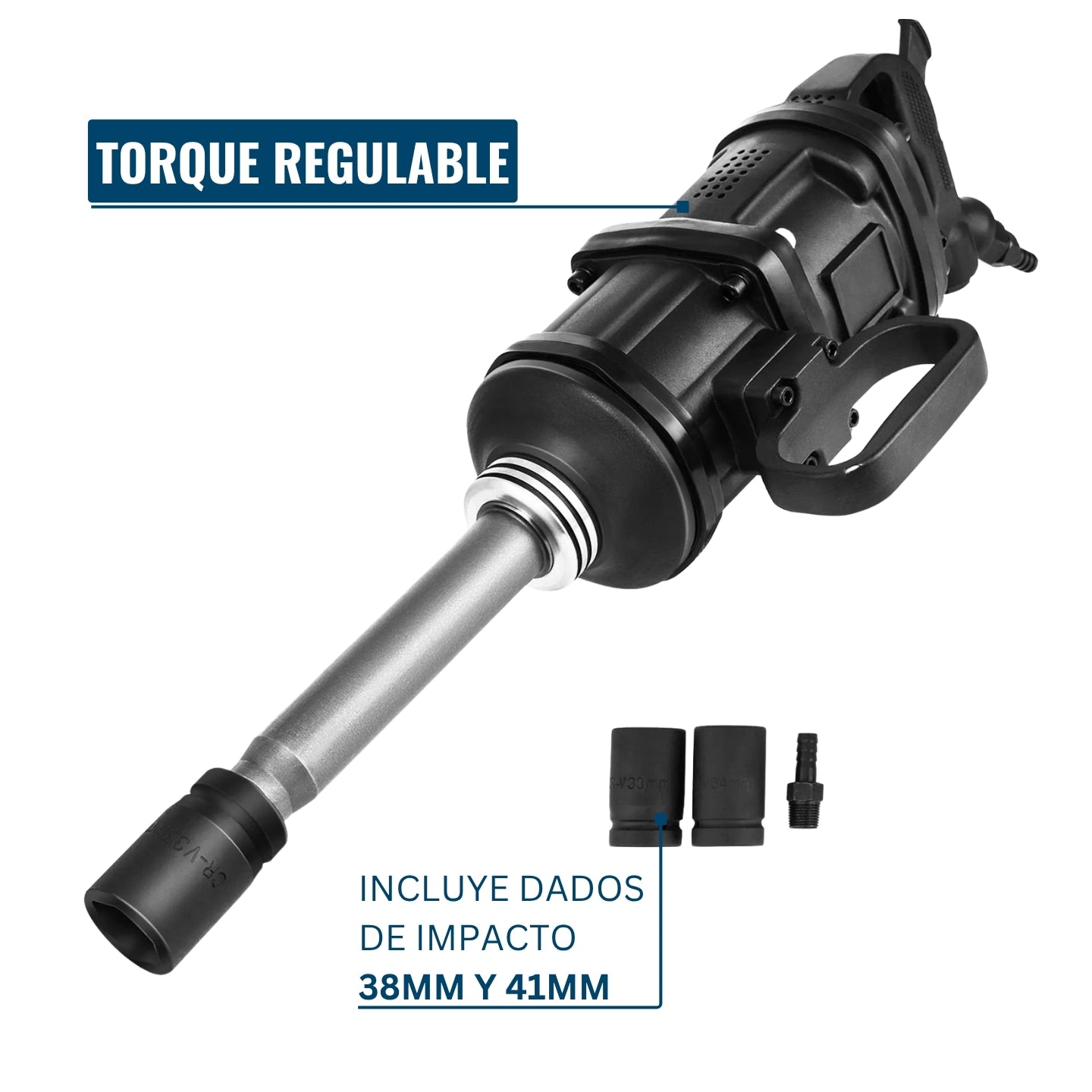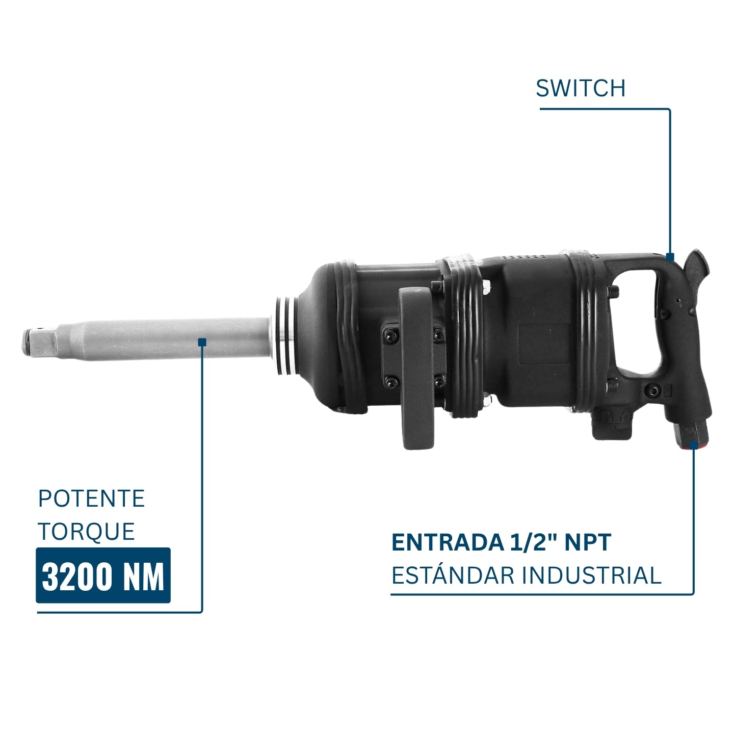 HERRAMIENTA DE ALTA POTENCIA DISEÑADA PARA TAREAS INDUSTRIALES Y AUTOMOTRICES, IDEAL PARA DESMONTAJE Y MONTAJE DE TUERCAS DE GRAN DIÁMETRO, EN CAMIONES, MAQUINARIA, TALLERES DE FLOTA, MINERÍA LIGERA O MANTENIMIENTO INDUSTRIAL