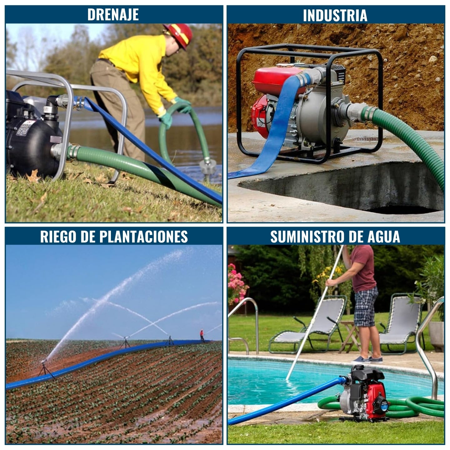 SIRVE PARA IMPULSAR O DRENAR AGUA EN RIEGO AGRÍCOLA Y USO CON MOTOBOMBAS, PERMITIENDO TRASLADAR GRANDES VOLÚMENES DE AGUA DE FORMA RÁPIDA Y EFICIENTE.