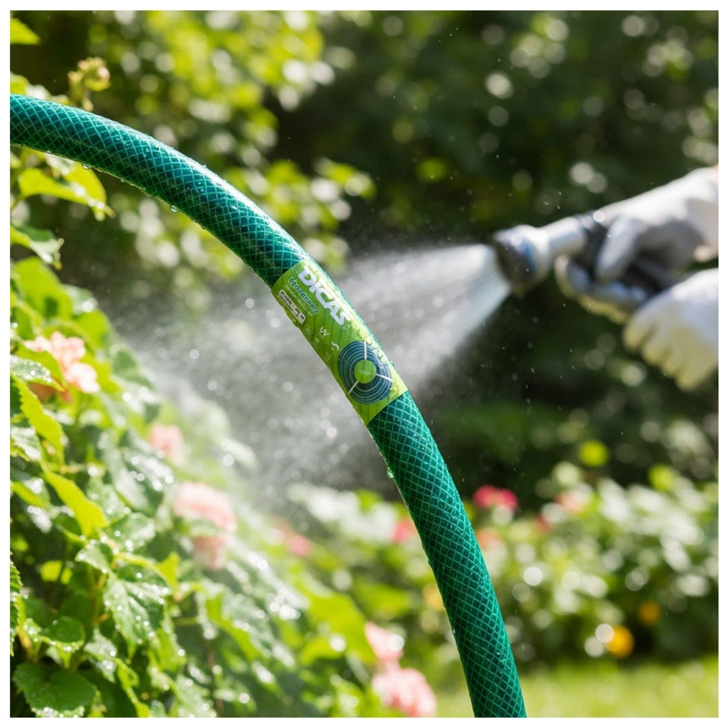 MANGUERA JARDIN CON MALLA 1/2 PULGADA 20 METROS CON ACOPLES DICAS