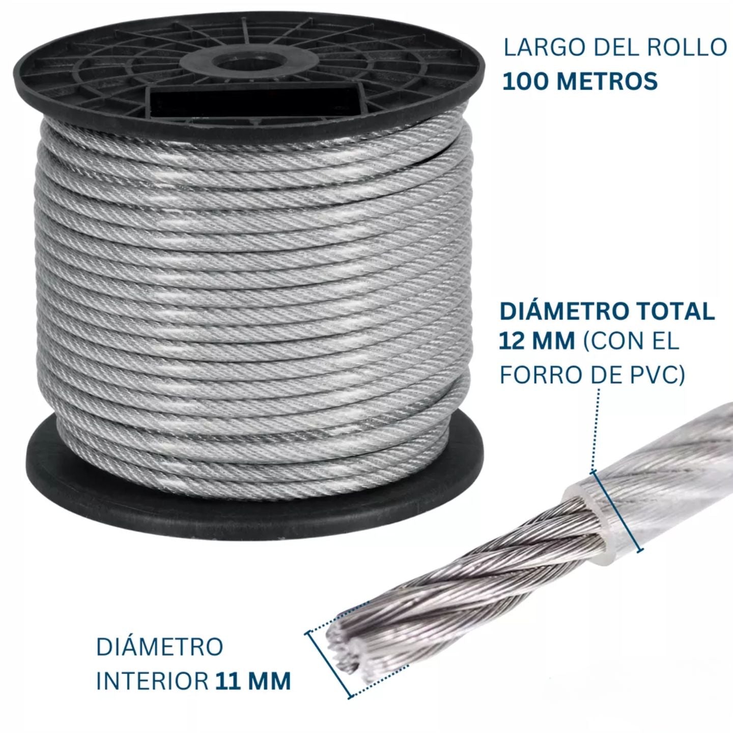 Piola Cable De Acero Forrado Pvc 11 Mm 100 Metros Dicas