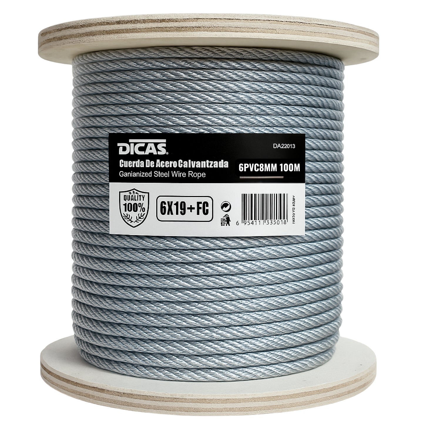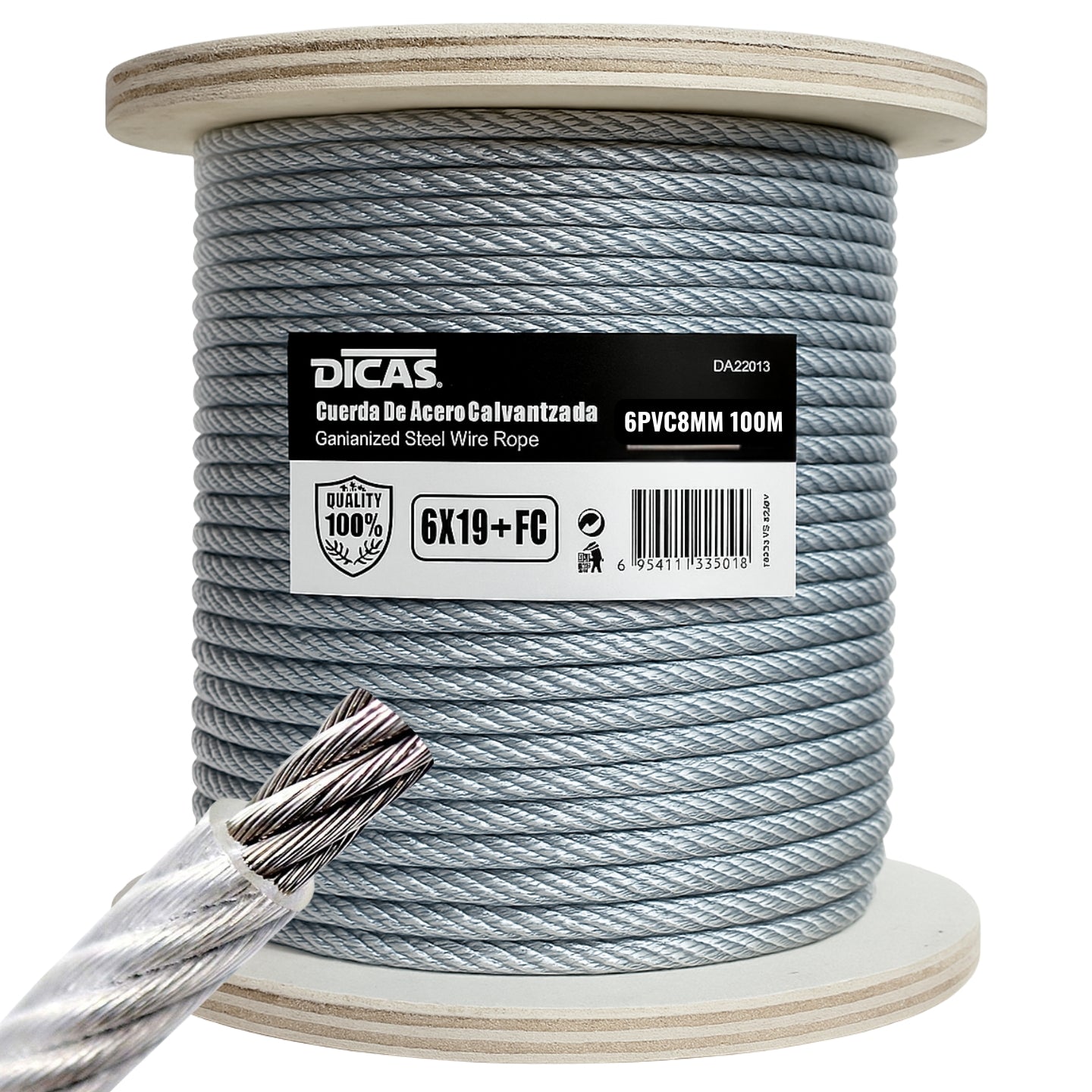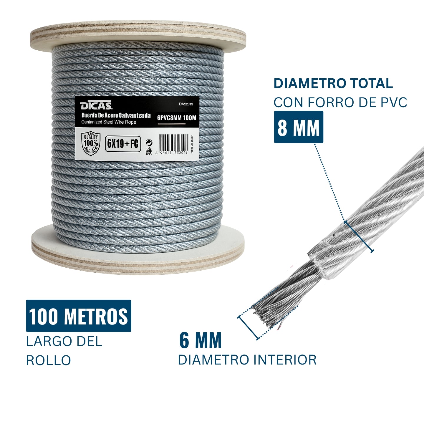 PIOLA CABLE DE ACERO FORRADO PVC 6 MM 100 METROS DICAS