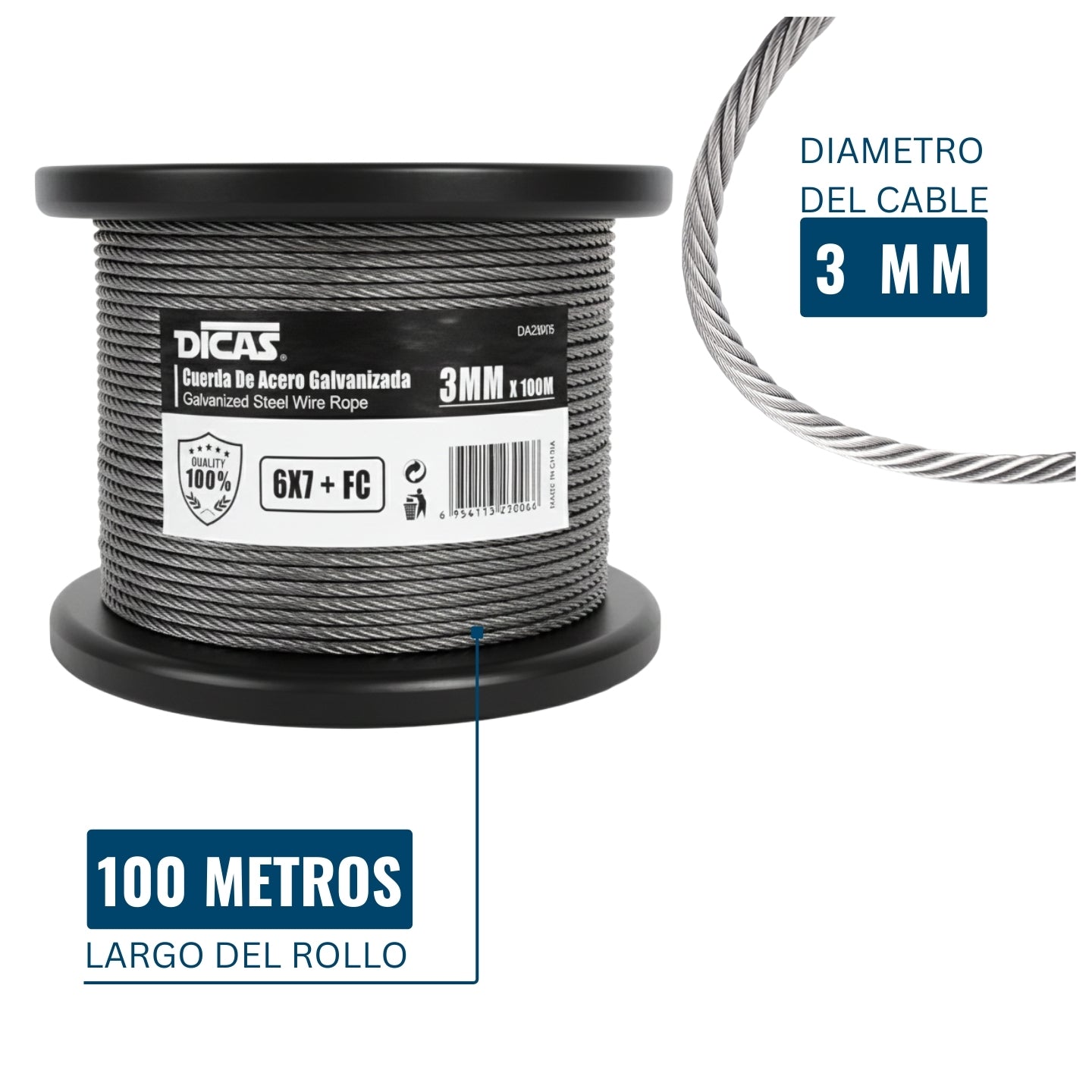 PIOLA DE ACERO GALVANIZADO 3 MM 100 METROS DICAS