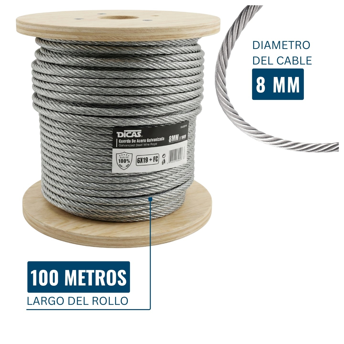 PIOLA DE ACERO GALVANIZADO 8 MM 100 METROS DICAS