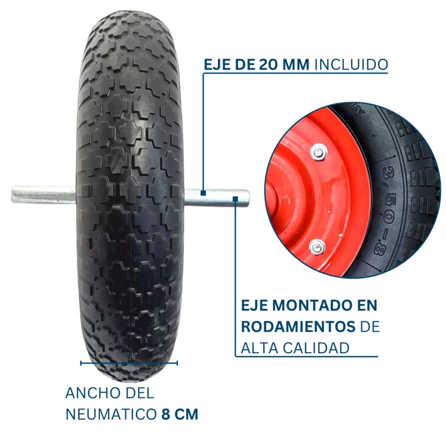RUEDA DE CARRETILLA INFLABLE CON EJE 3.50 8 DICAS