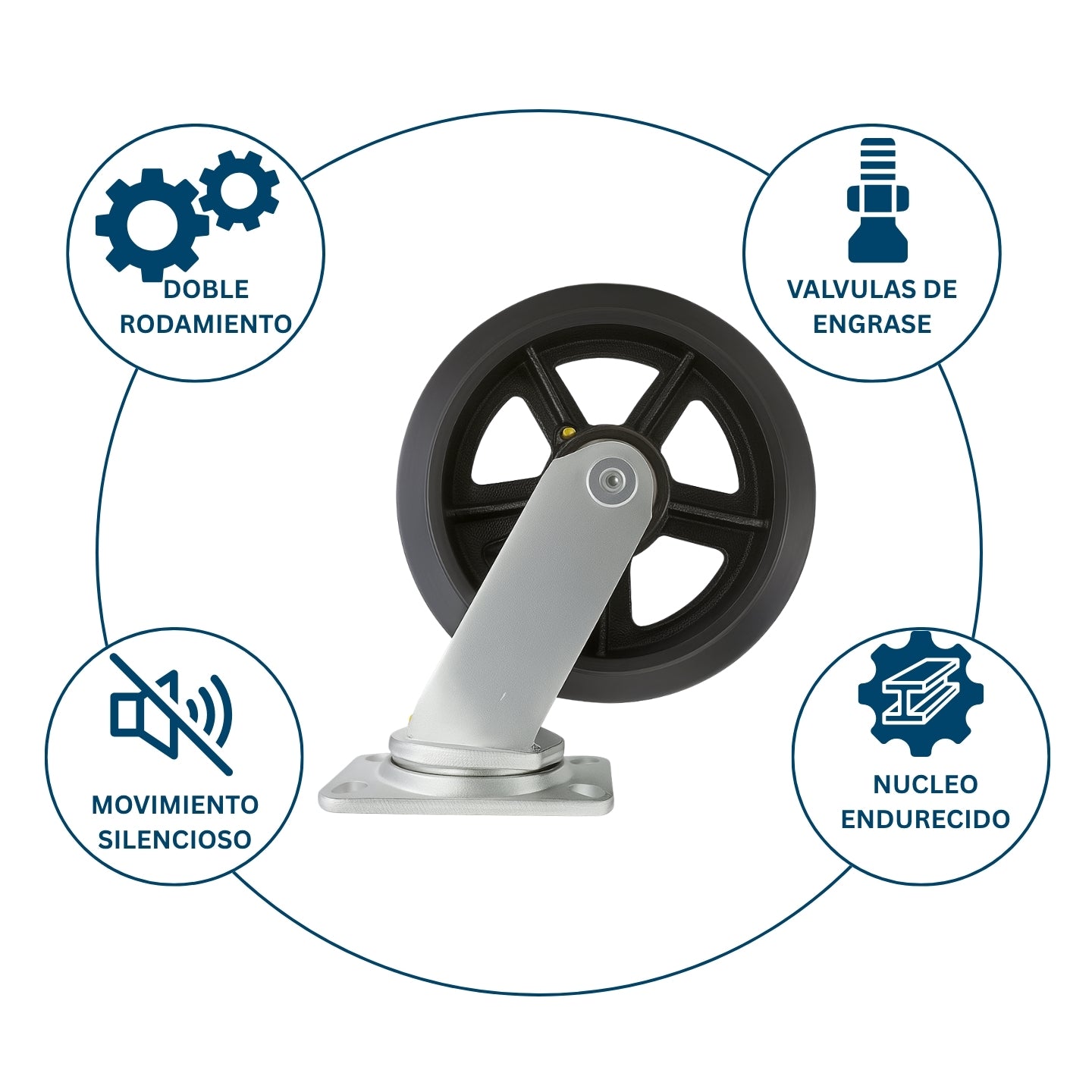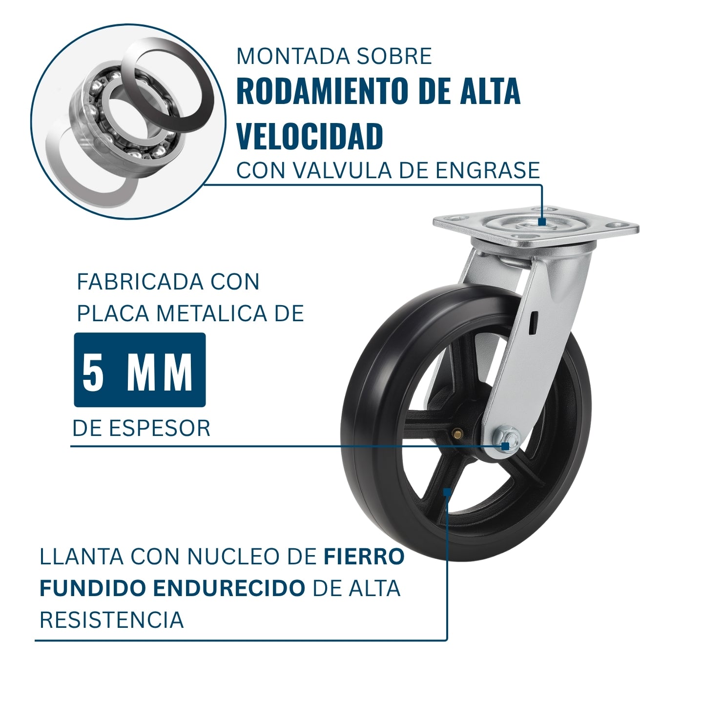 • RUEDA GIRATORIA CON LLANTAS DE FIERRO FUNDIDO ENDURECIDO PARA MAYOR RESISTENCIA