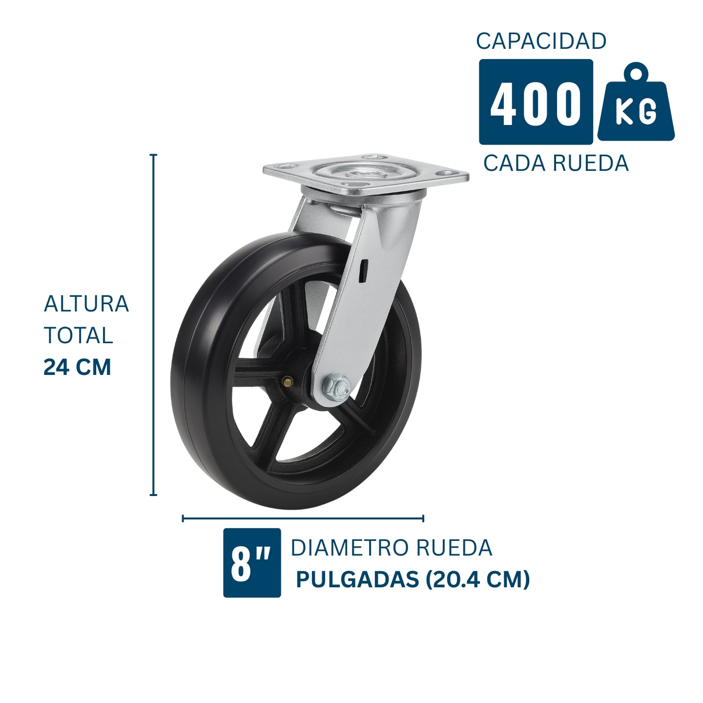 RUEDA GIRATORIA PARA CARRO 8 PULGADAS 400 KILOS DICAS