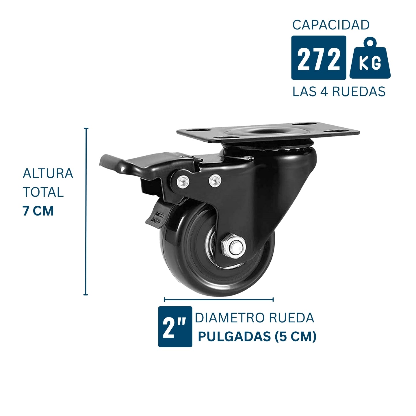 RUEDAS GIRATORIAS CON FRENO PARA MUEBLES CARRITOS 2 PULGADAS 4 UNIDADES DICAS