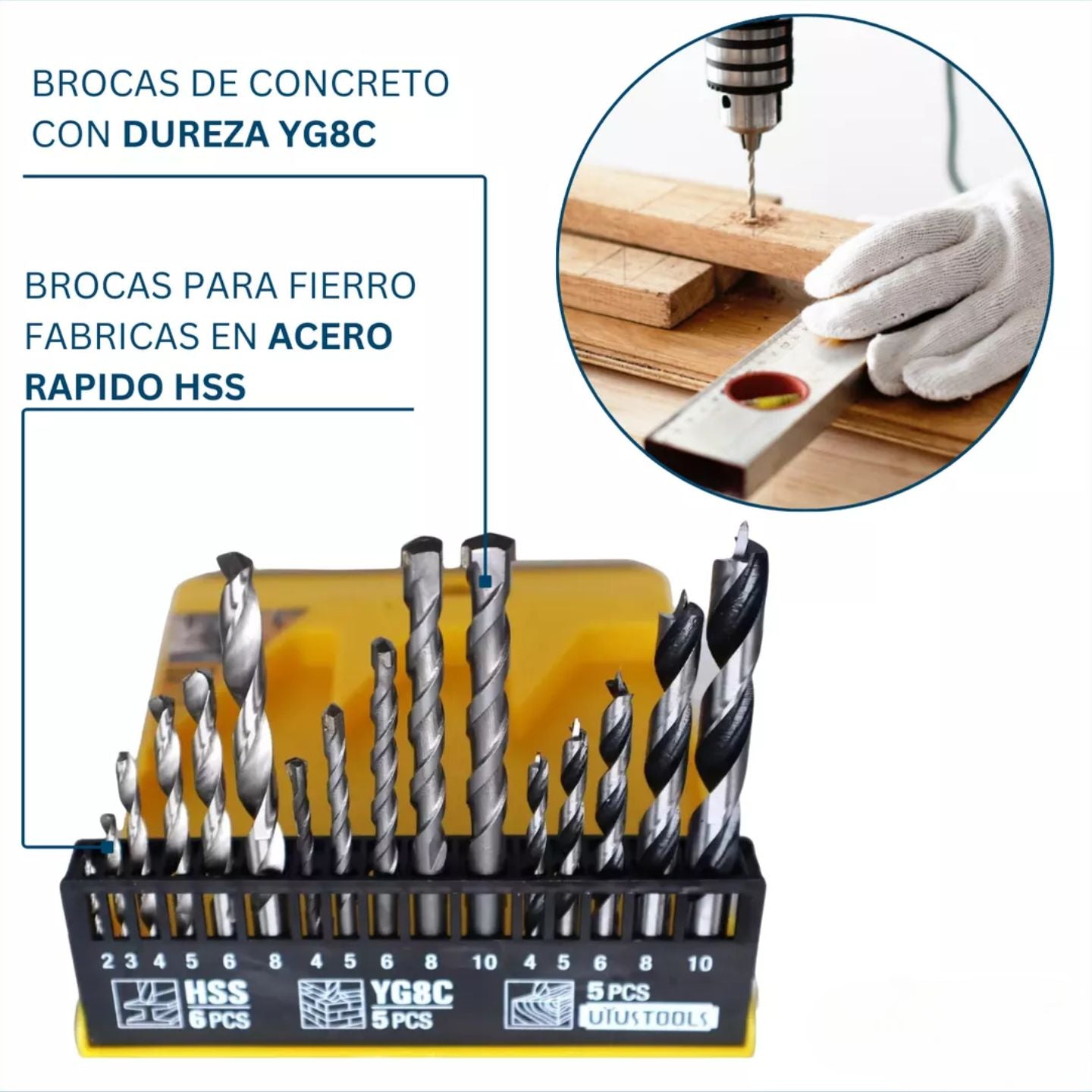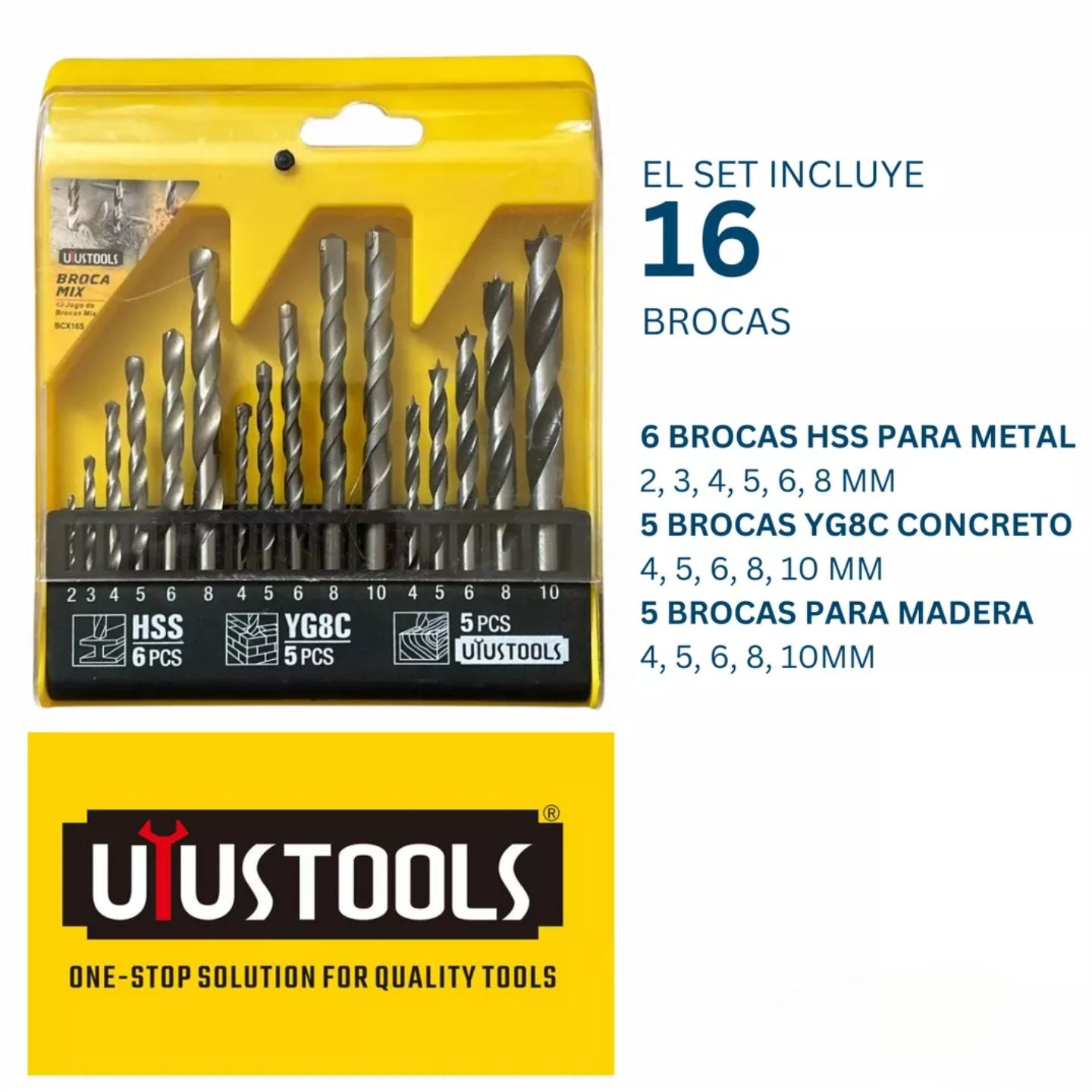 BROCAS PARA METAL MADERA CONCRETO 16 PIEZAS UYUSTOOLS