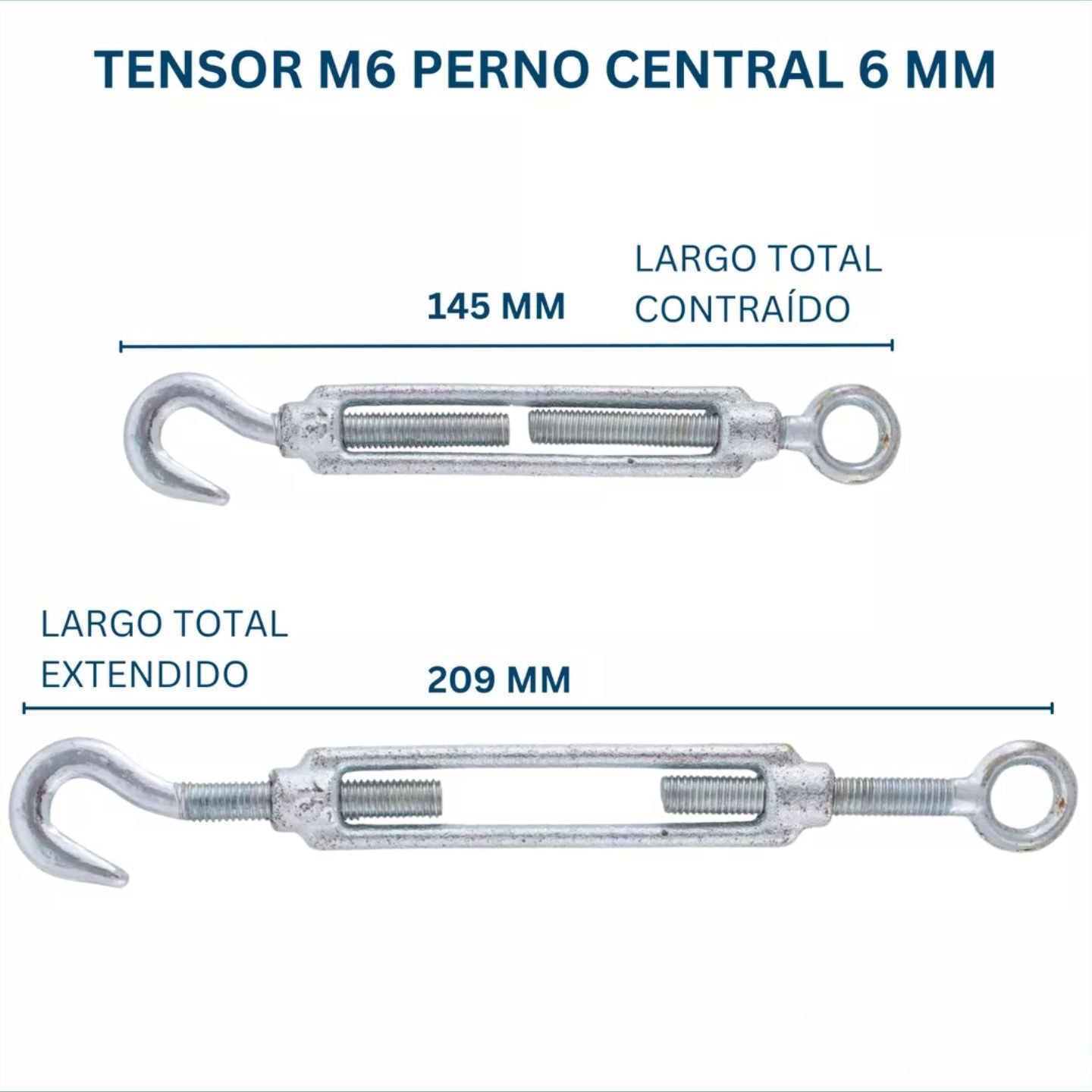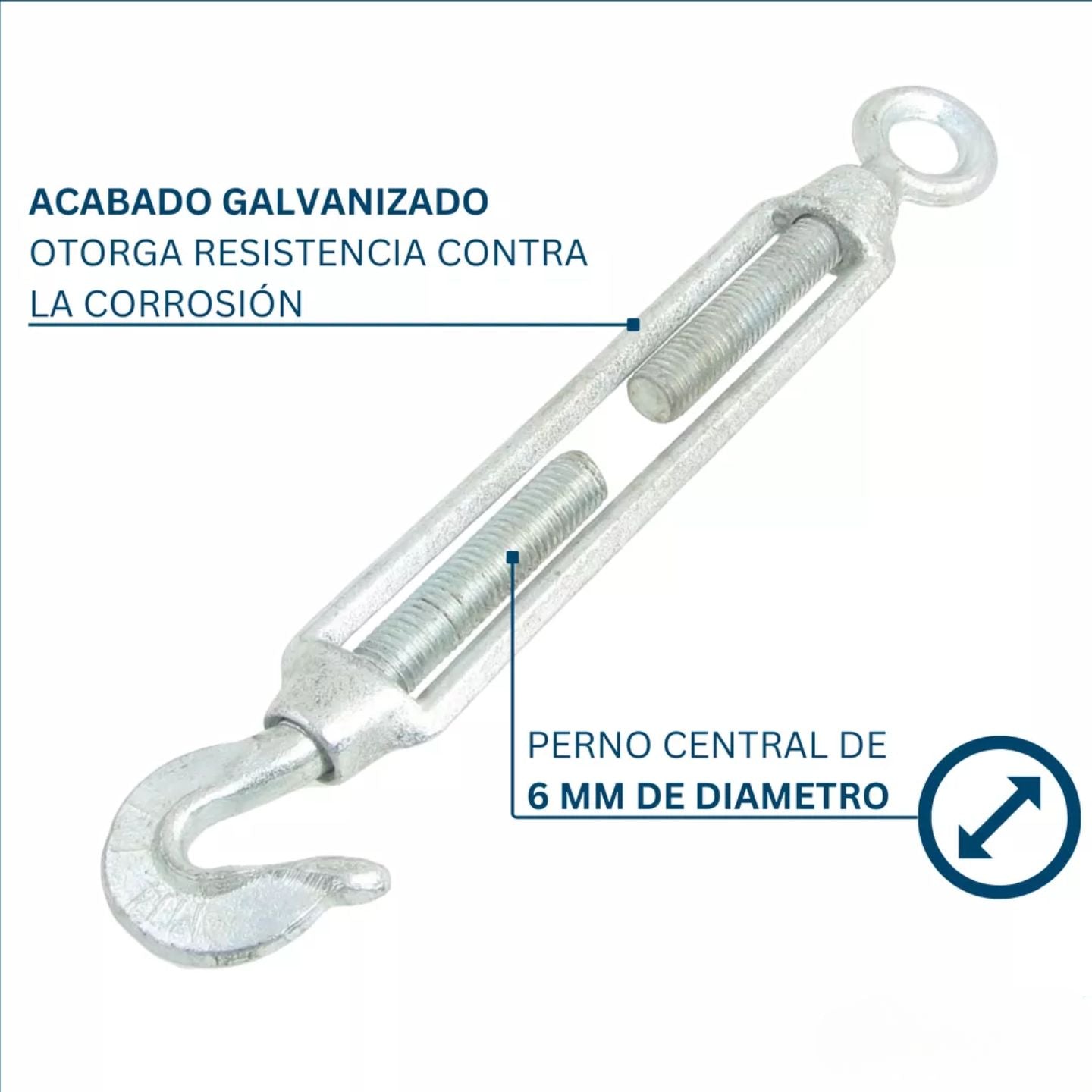 Tensor Ojo Gancho 1/4 M6 Galvanizado 12 Unidades Dicas