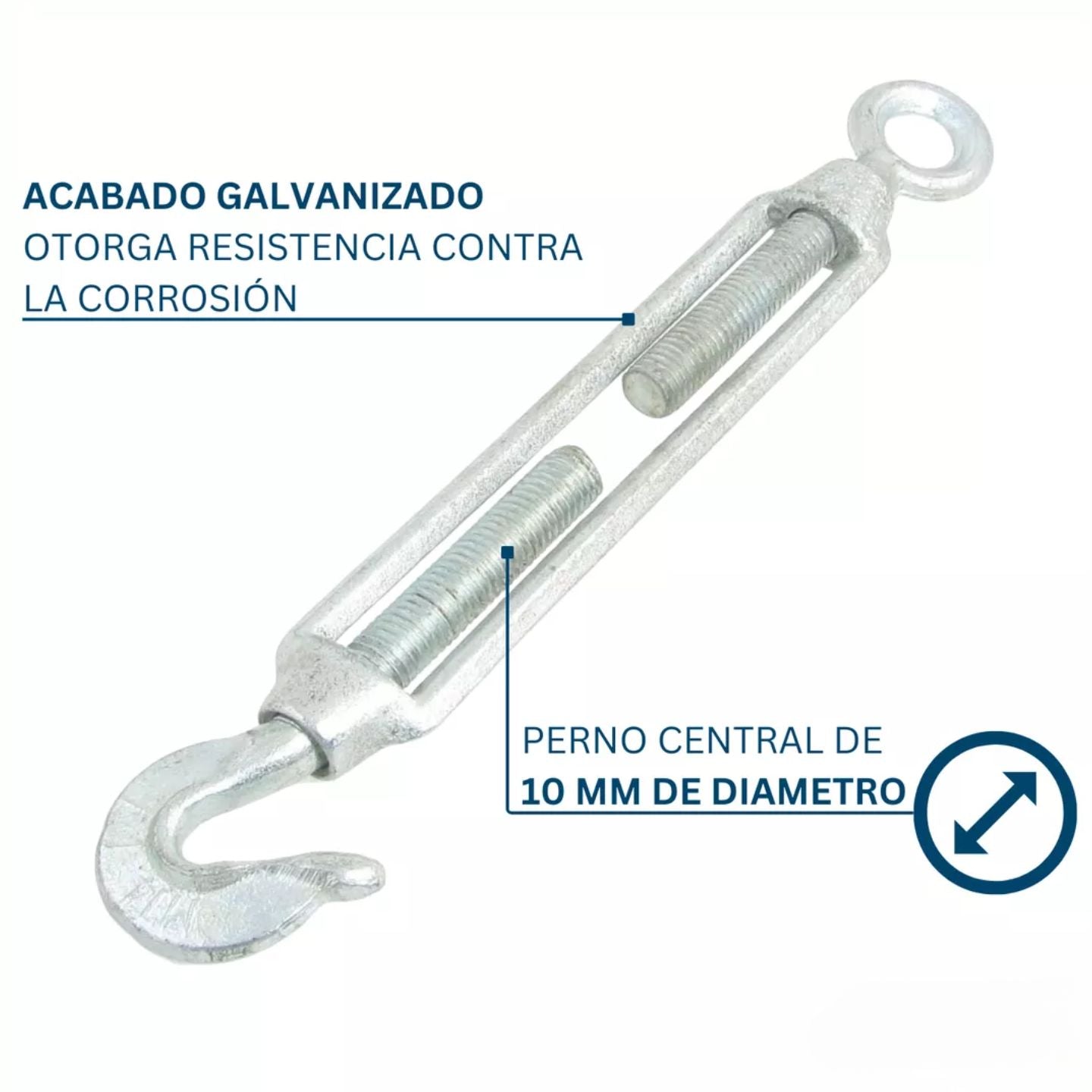 TENSOR OJO GANCHO 3/8 M10 GALVANIZADO 3 UNIDADES DICAS