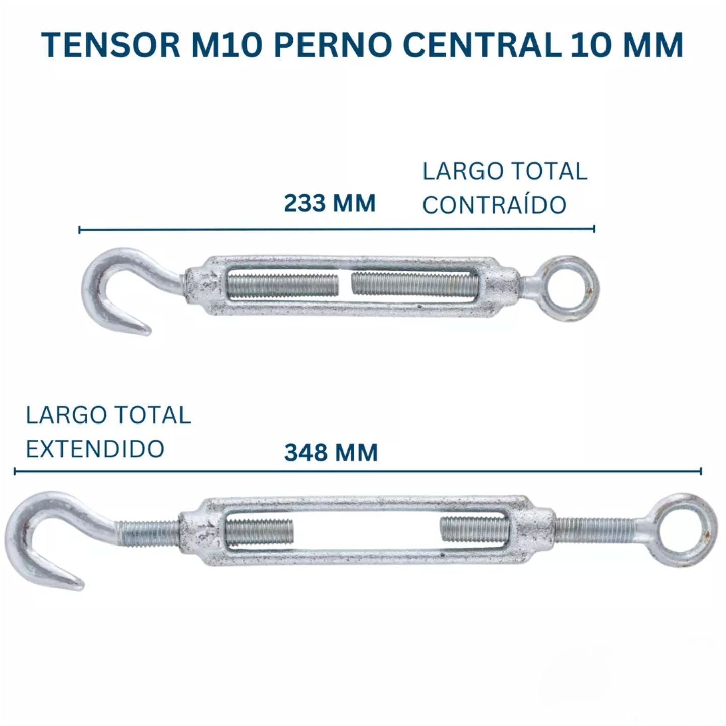 Tensor Ojo Gancho 3/8 M10 Galvanizado 3 Unidades Dicas