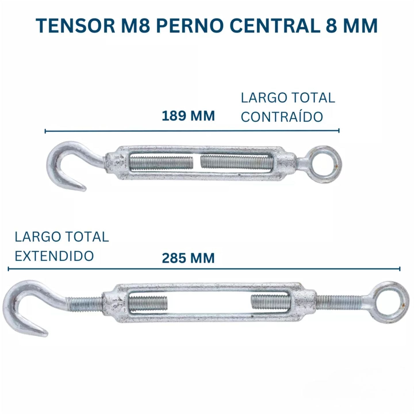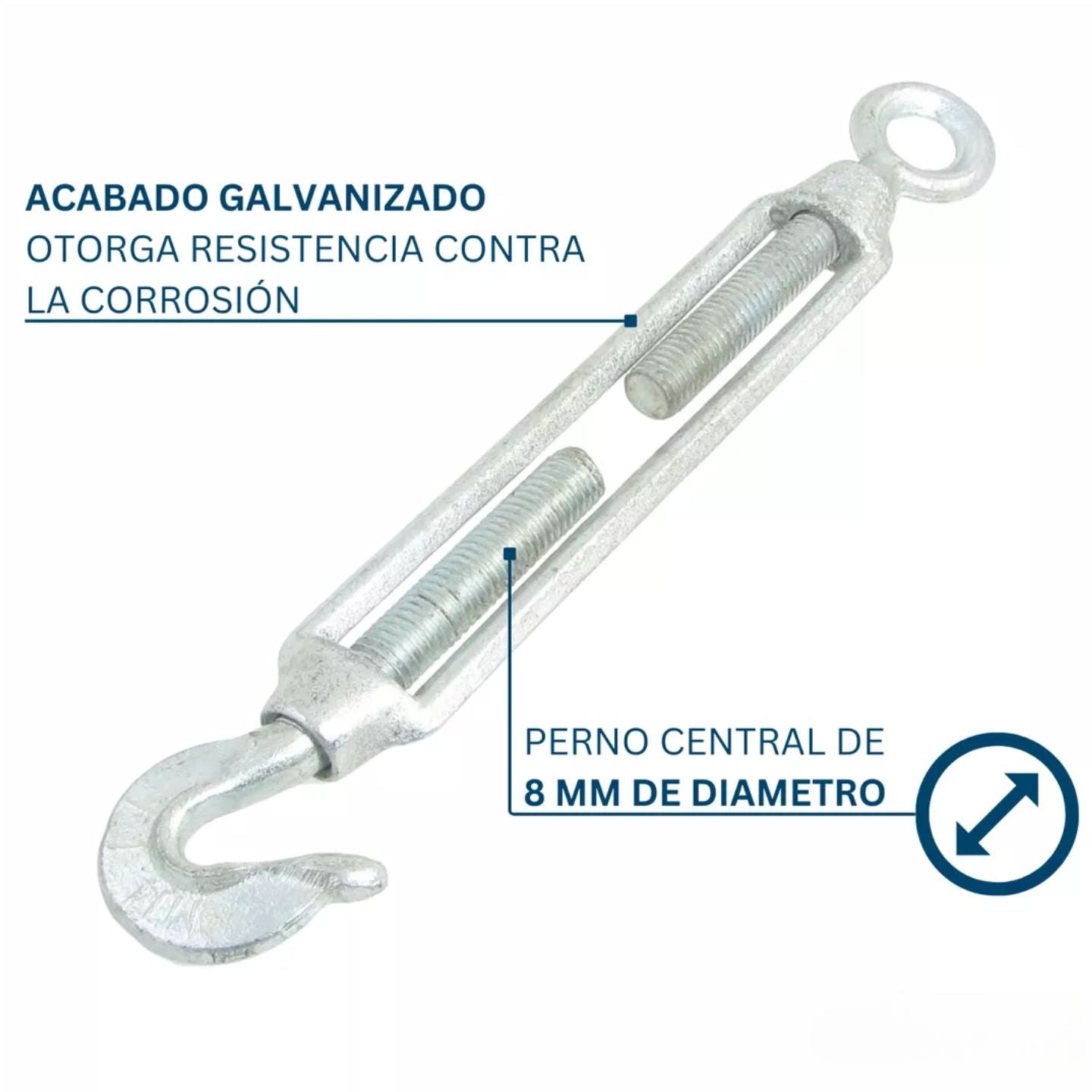 Tensor Ojo Gancho 5/16 M8 Galvanizado 12 Unidades Dicas
