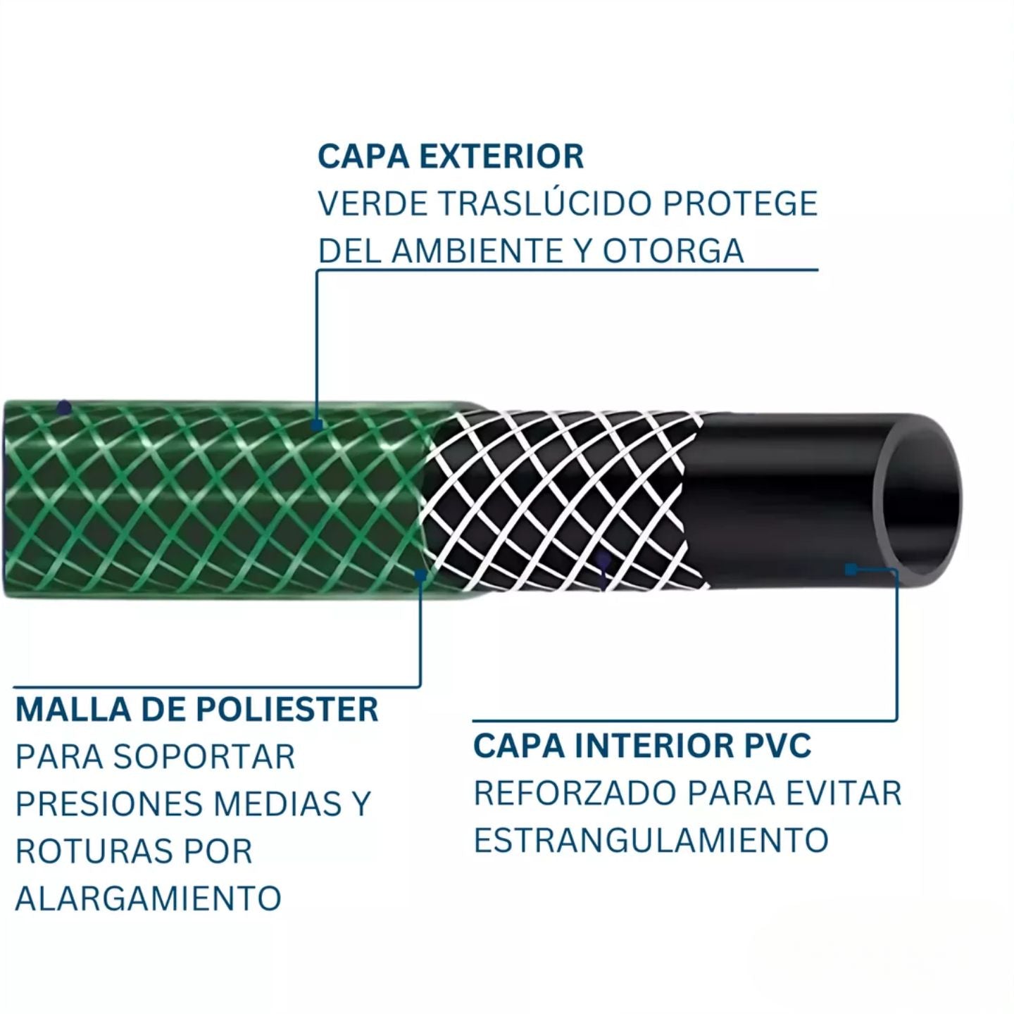 Prácticas, livianas y pensadas para facilitar tu día a día. Mangueras de jardín para uso doméstico o semiprofesional, compatibles con todo tipo de conectores. Riego cómodo, sin enredos y con control total del agua.